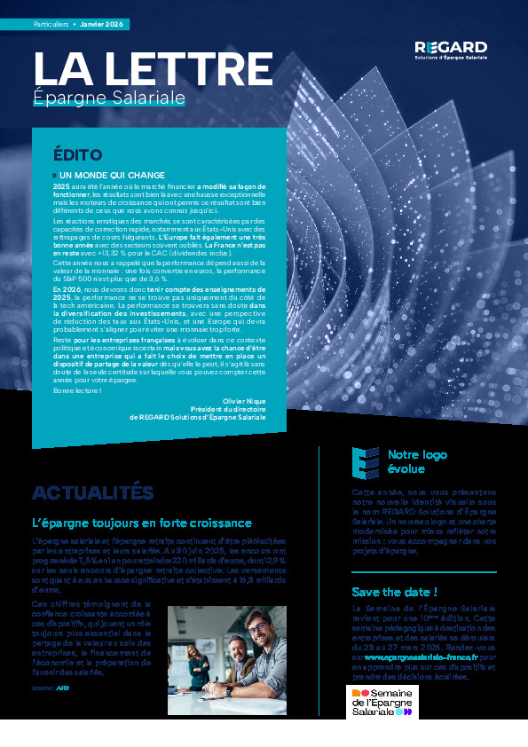 Nos Publications La Lettre Epargne Salariale 2026 La Lettre Epargne Salariale 2025 Rapport annuel de gestion REGARD EPARGNE exercice 2023 Rapport annuel de gestion FIBTP exercice 2023 La Lettre Epargne Salariale 2024 Rapport annuel de gestion FIBTP exercice 2022 Rapport annuel de gestion REGARD EPARGNE exercice 2022 La Lettre Epargne Salariale 2023 Rapport annuel de gestion REGARD EPARGNE exercice 2021 12>